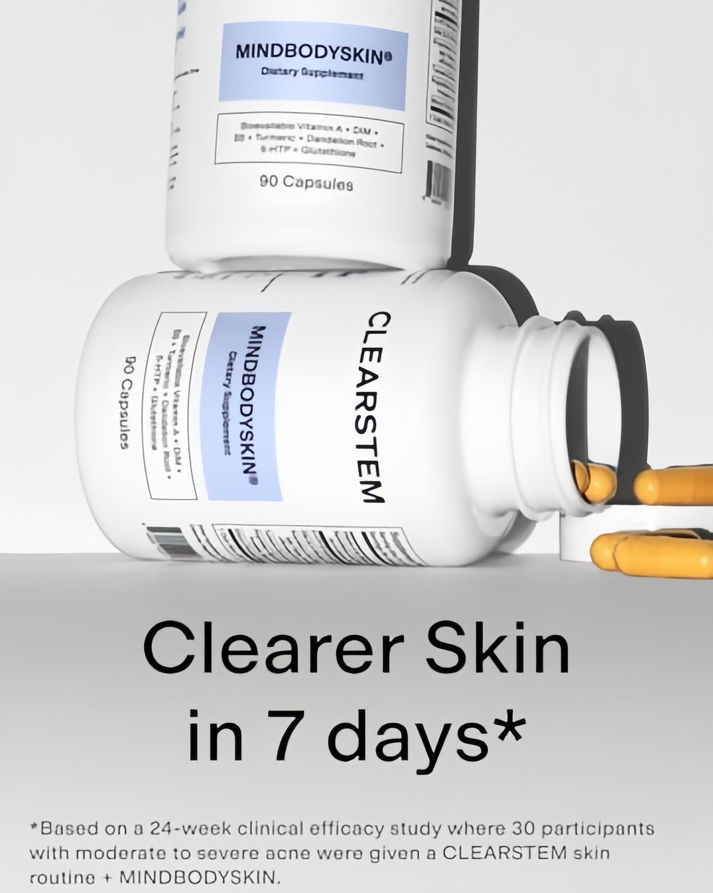 **Based on a 24-week clinical efficacy study where 30 participants with moderate to severe acne were given a CLEARSTEM skin routine + MINDBODYSKIN.